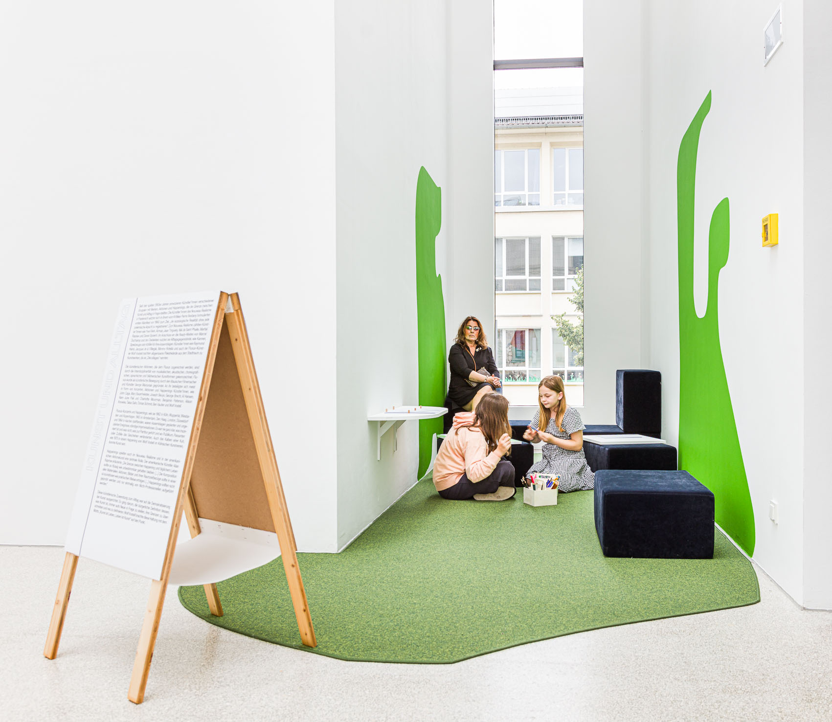The design also includes participatory formats and selected label texts adapted for children to support intergenerational dialogue within the space.