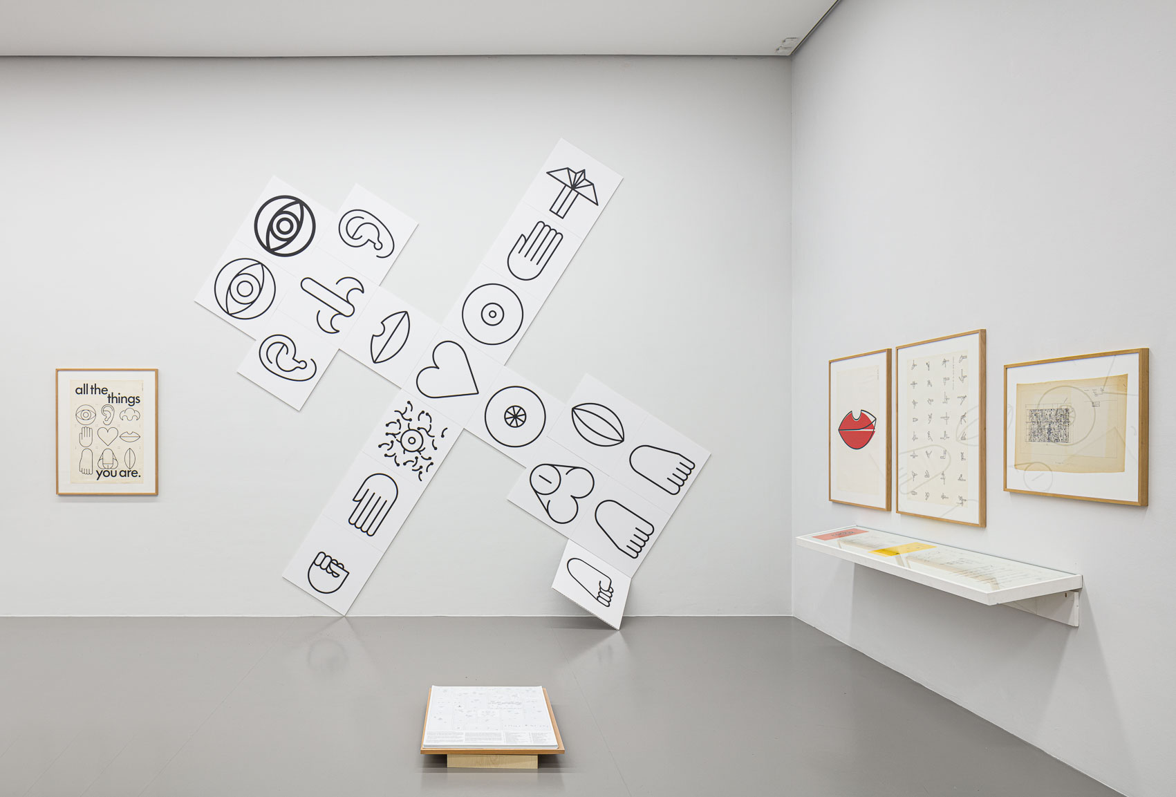 The artists and designers presented in the exhibition have formulated various pictorial sign systems associated with intrinsically different objectives: they serve to convey knowledge and social participation, they are used to organise public life, or are designed to convey the succinct expression of individual emotions. Some of the authors are motivated by the desire for universal legibility; others develop personal sign systems that question the unambiguous nature of signs per se. The versatile use in ever-new modes of communication underlines the essential mutability of pictograms, which goes hand in hand with both the social and individual needs of their particular era.